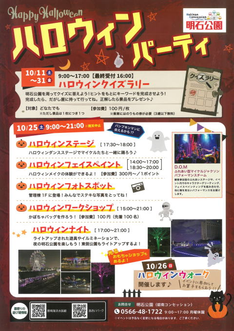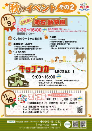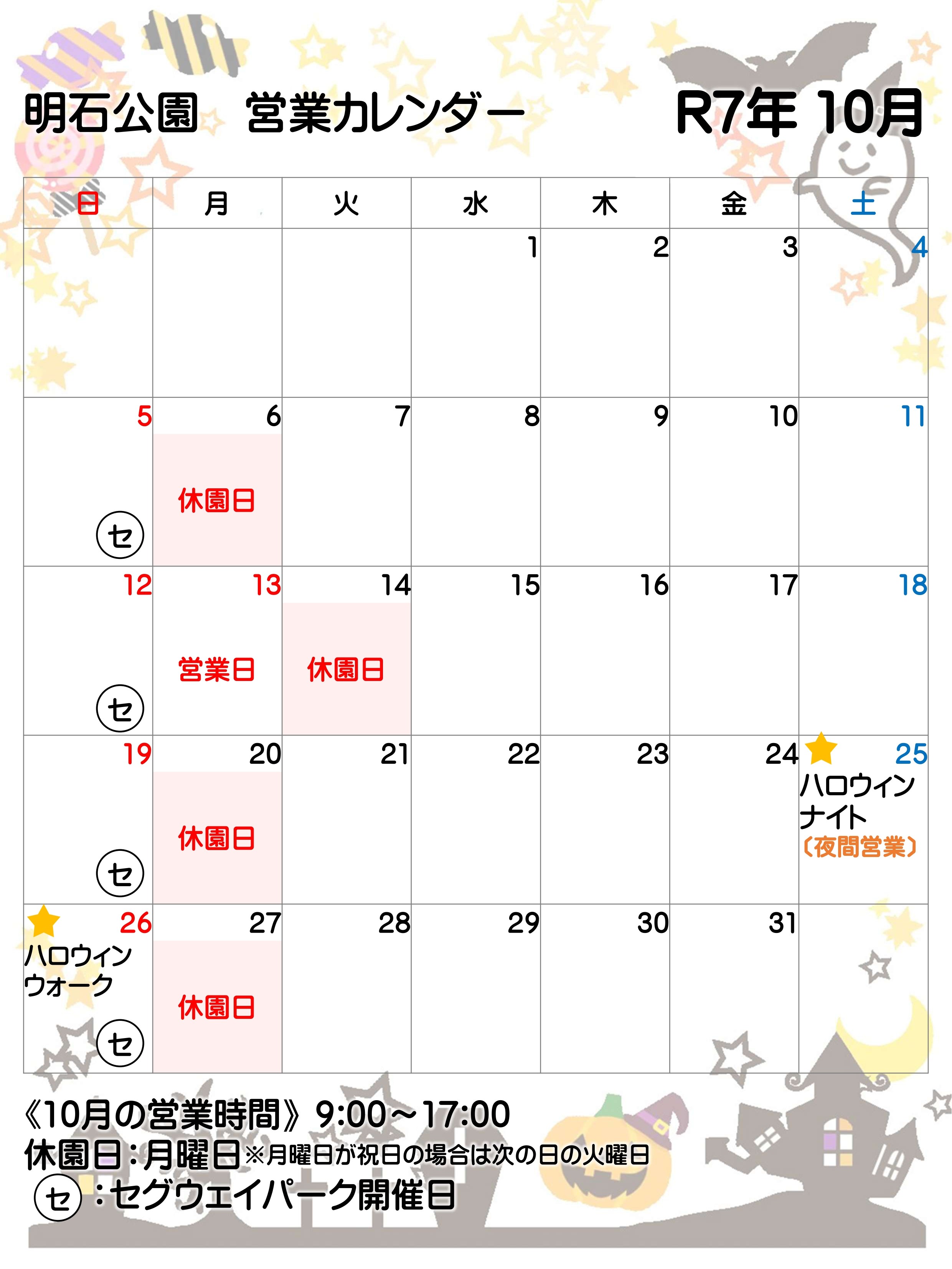 ※本日10月26日(日)、雨天の為遊具の運行休止しています。〔明石公園営業カレンダーを作成しました(10月)〕